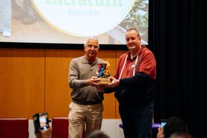 Voorzitter Wim Ludeke overhandigde de prijs aan Stefan Rutjes, Logistiek-manager van Intratuin Duiven.